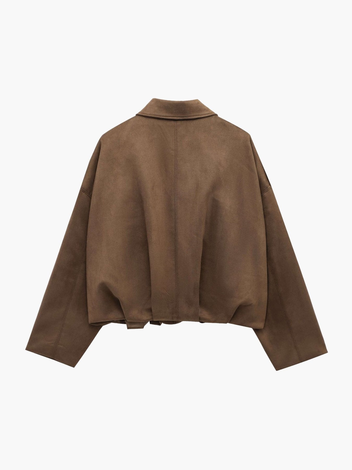 The Lara Suede Bomber Jacket is a modern take on the classic bomber, designed to bring effortless style and comfort to your wardrobe. Crafted from 100% premium polyester with a suede finish, it offers a soft touch and durable structure that makes it perfect for layering through different seasons. Featuring a relaxed oversized fit, a zip-up front, and a gathered hemline, it strikes the balance between laid-back streetwear and polished sophistication. The collared neckline adds a timeless touch, while the slightly dropped shoulders and wide sleeves create a chic, contemporary silhouette.